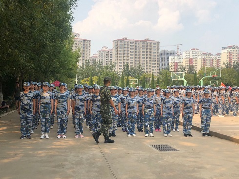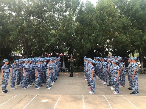 9月1日,外国语学院2019级新生于篮球场进行军事训练活动,党总支书记王保中,副书记靳成学,及学生科全体成员莅临军训现场。